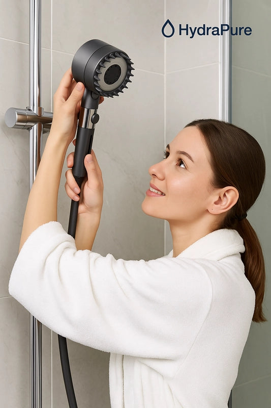Découvrez comment HydraPure transforme instantanément votre expérience sous la douche. Grâce à sa filtration avancée et à son jet haute performance, notre pommeau protège votre peau, renforce vos cheveux et vous offre une eau plus pure, jour après jour.